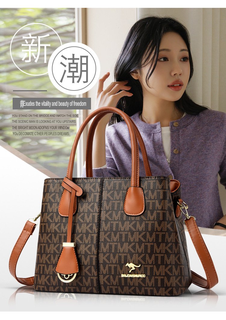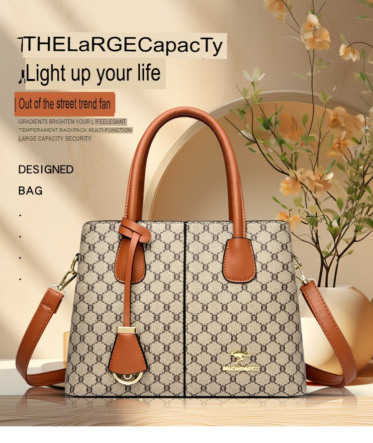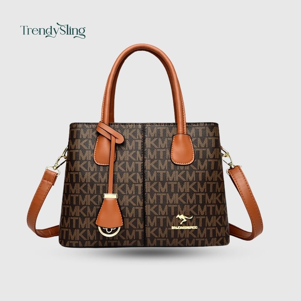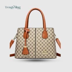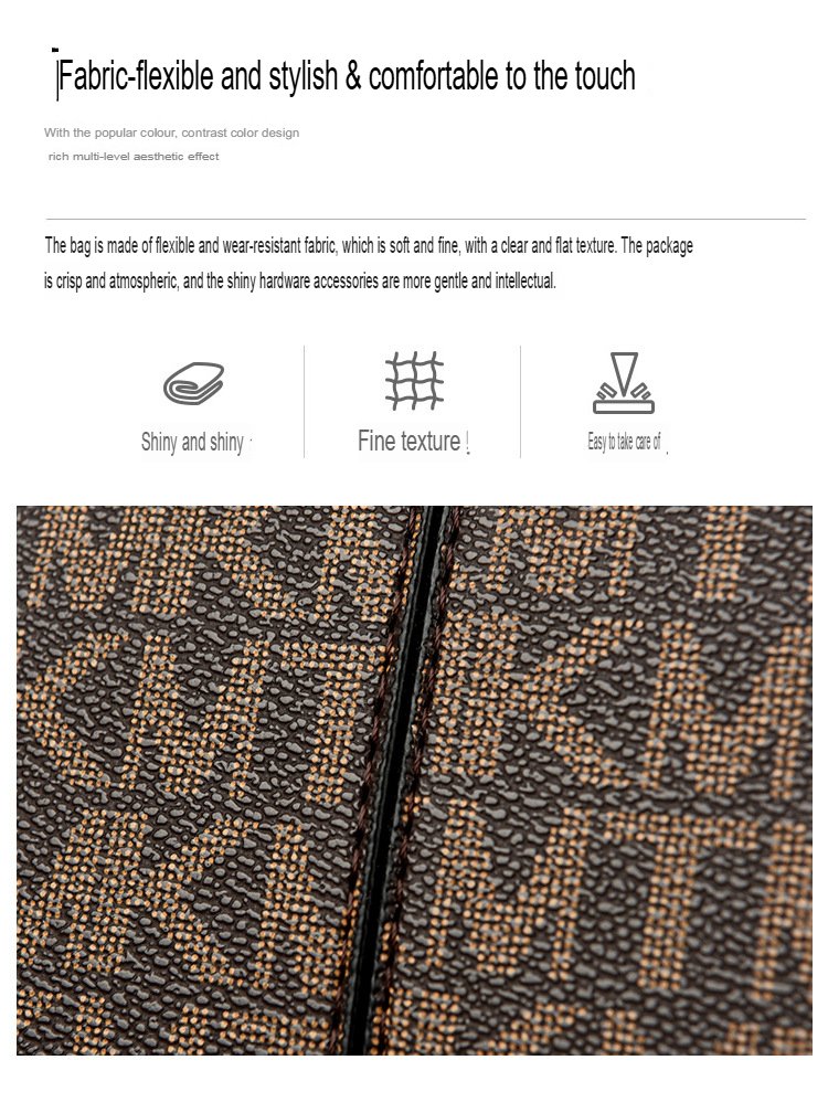 Upgrade your daily ensemble with this sophisticated and functional satchel. Designed for the modern woman who values both style and substance, this bag features a classic monogram pattern paired with rich coffee-toned accents. Whether you’re heading to the office or a weekend brunch, its spacious interior and versatile carrying options make it your perfect companion.