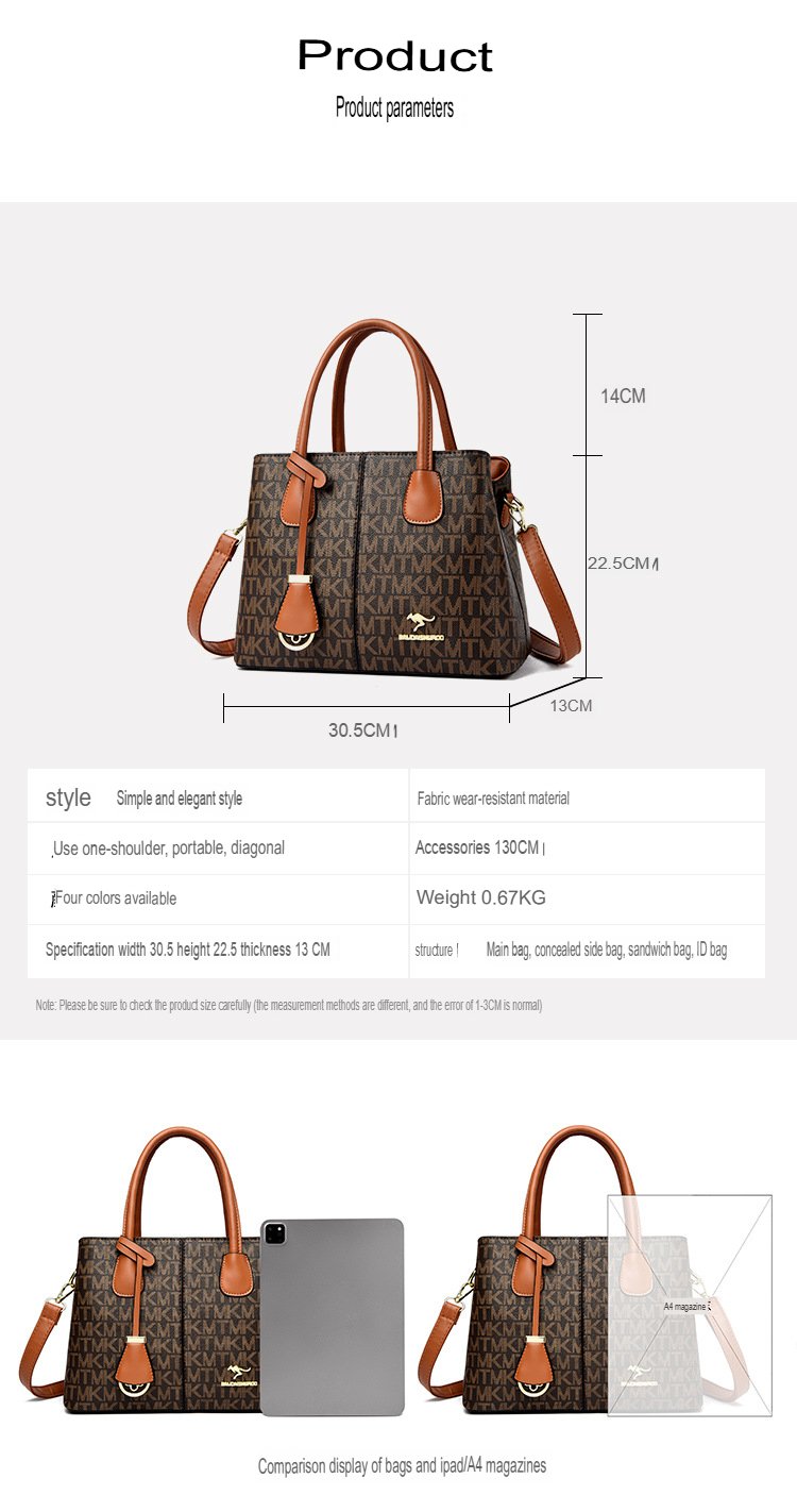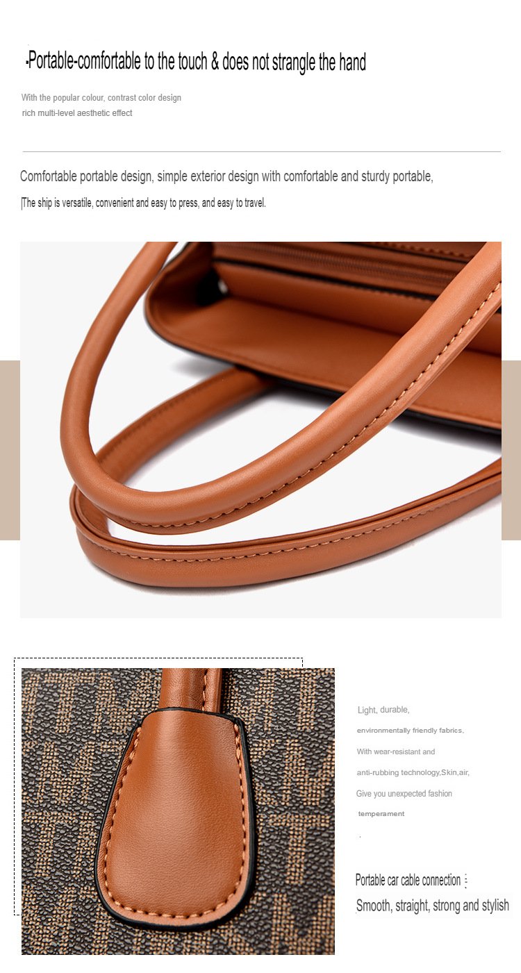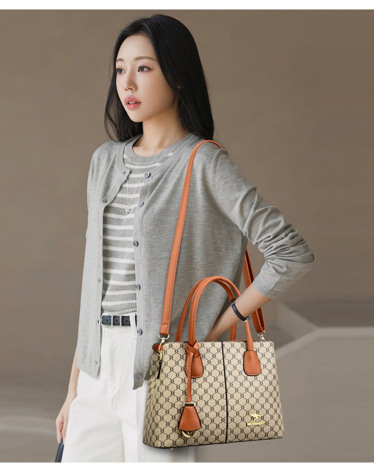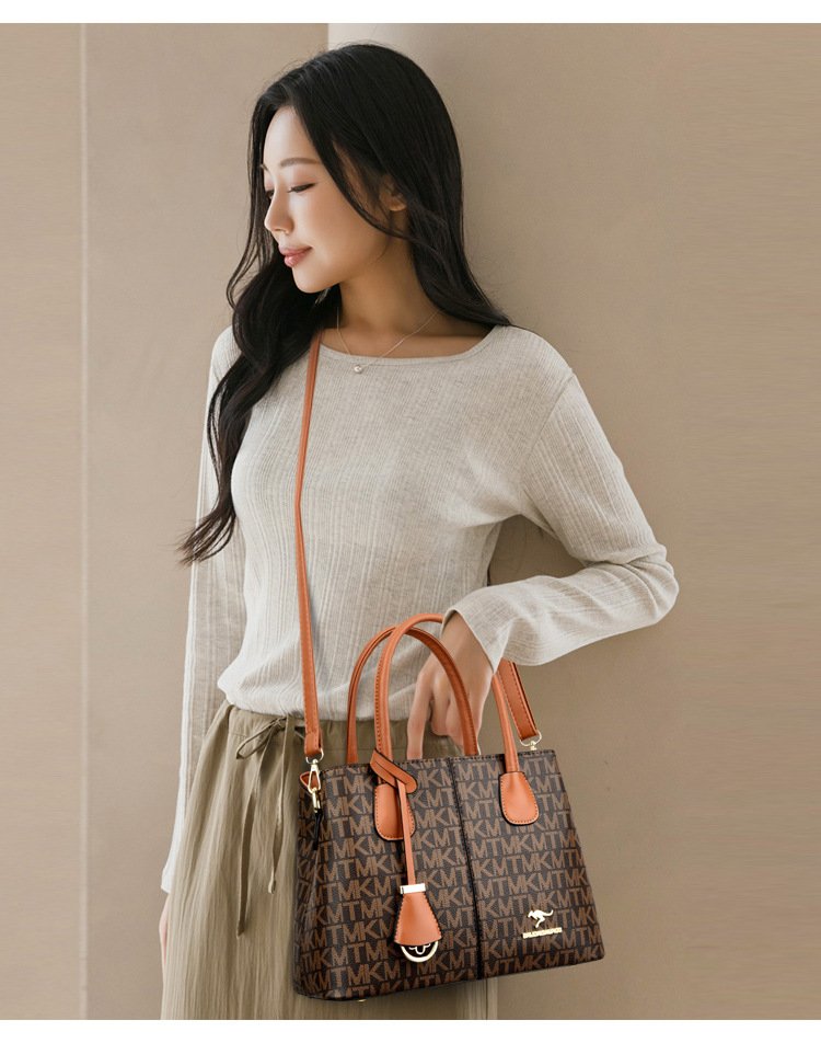Upgrade your daily ensemble with this sophisticated and functional satchel. Designed for the modern woman who values both style and substance, this bag features a classic monogram pattern paired with rich coffee-toned accents. Whether you’re heading to the office or a weekend brunch, its spacious interior and versatile carrying options make it your perfect companion.